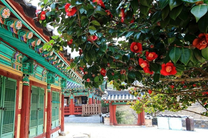 현재는 천연기념물 제184호로 지정돼 그 가치와 아름다움을 인정받고 있습니다. 웅장하고 고요한 사찰과 사찰을 감싸고 있는 동백꽃이 만들어 내는 풍경이 눈길을 사로잡습니다.