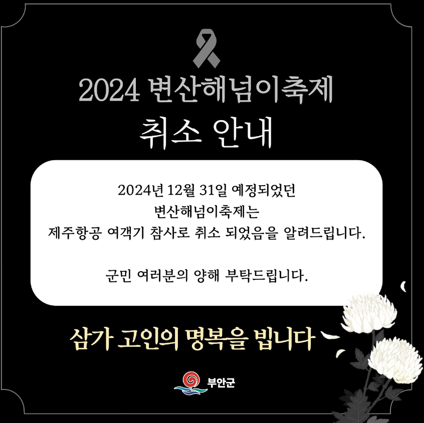 📍 변산해넘이 축제는 12월 29일 무안 제주항공 여객기 사고로 인해 취소되었습니다. 애도의 마음을 함께합니다.