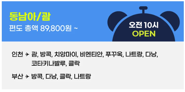 - 부산출발 : 방콕, 다낭, 클락, 나트랑