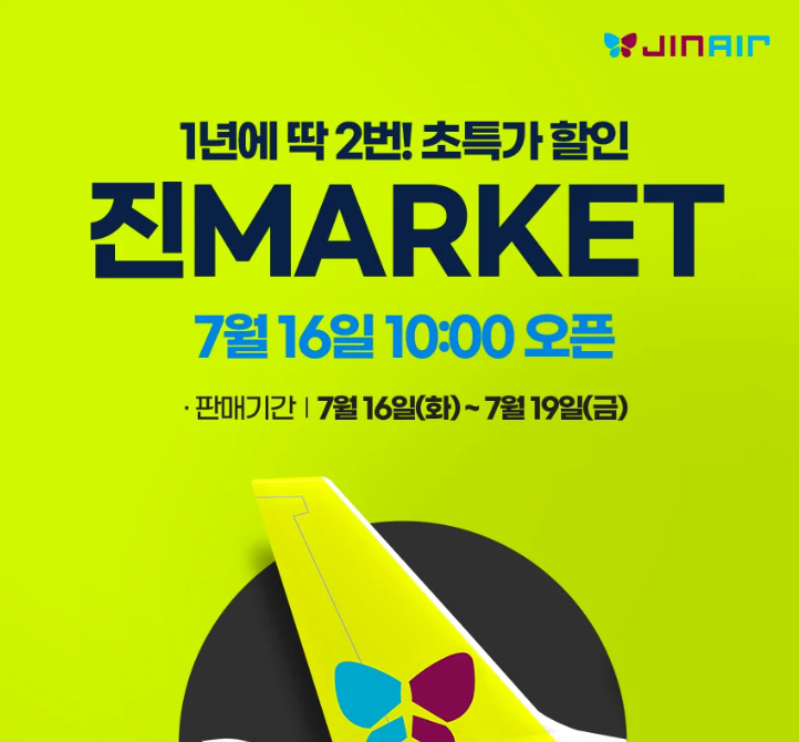 진에어의 2024 하반기 항공권 초특가 할인행사 진마켓을 진행합니다. 1년에 딱 2번, 올해 마지막 초특가 할인기회 놓치지 마시고 아래 예매성공 꿀팁정보까지 확인하여 예매성공하시기 바랍니다.