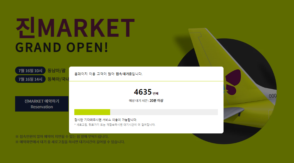 🔸 진마켓에 입장하여 대기열에 걸려도 화면을 빠져나오지 마세요. 재진입하기 어려울 뿐만 아니라 순서만 더 뒤로 밀립니다.