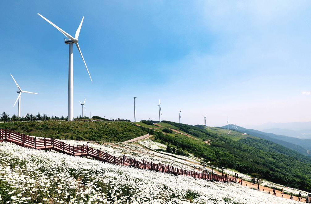 강원도 평창에 위치한 육백마지기는 해발 1,200m에 달하는 고랭지 평원으로, 드넓은 초원과 풍력발전기가 이국적인 풍경을 자아내는 곳입니다. 이곳은 특히 봄에는 하얀 샤스타데이지, 여름에는 보라색 청보리가 가득 피어나 계절마다 다른 매력을 선사합니다. 정상까지 차로 쉽게 오를 수 있어, 낭만적인 드라이브와 함께 아름다운 자연을 만끽하기에 완벽한 장소입니다.