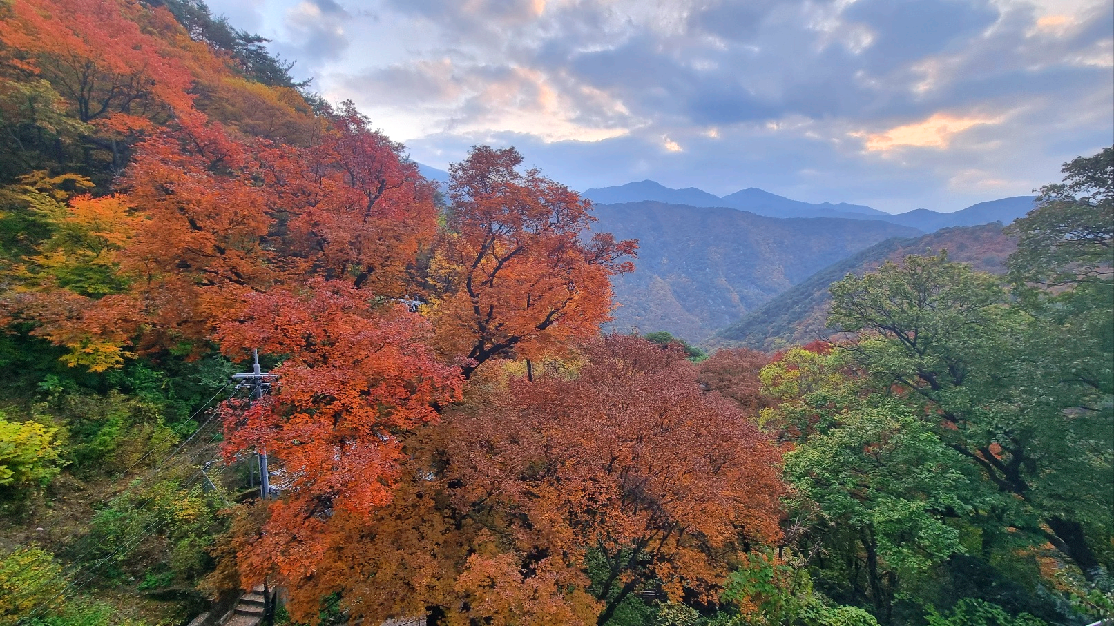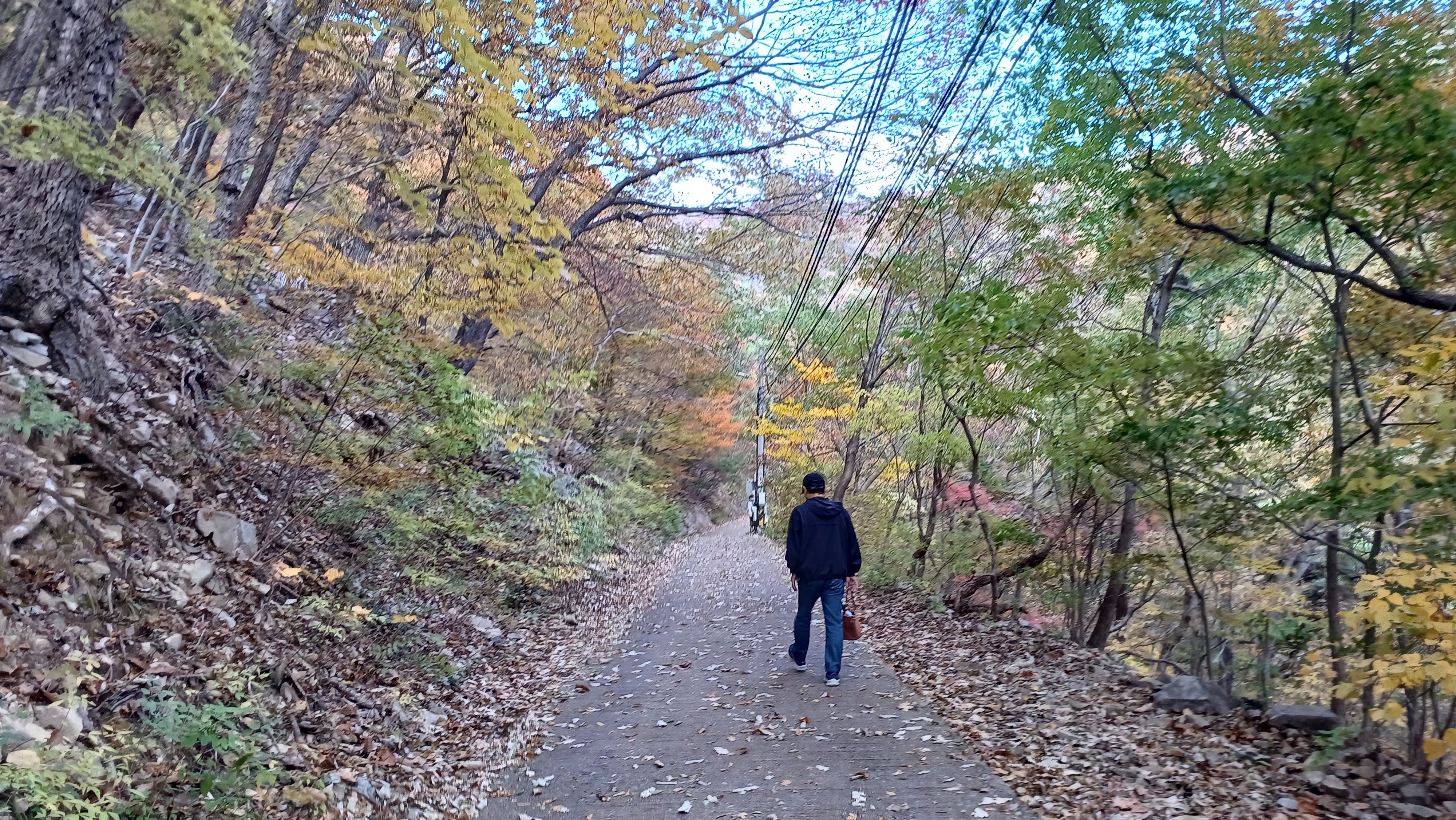 저는 걷기에 그리 자신 있는 편이 아니지만 30분 정도 오르면 된다고하여 "그정도 쯤이야 뭐~" 했다가 고생 좀 했습니다. 그치만 가을이잖아요, 발걸음마다 마주하는 경치가, 산 속 공기가 좋아서 오르막길도, 계단길도 걷고 또 걸었습니다.