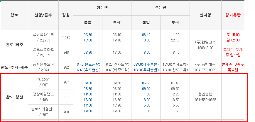 • 완도항 여객선 터미널 : 완도항 여객선 터미널 홈페이지 바로가기