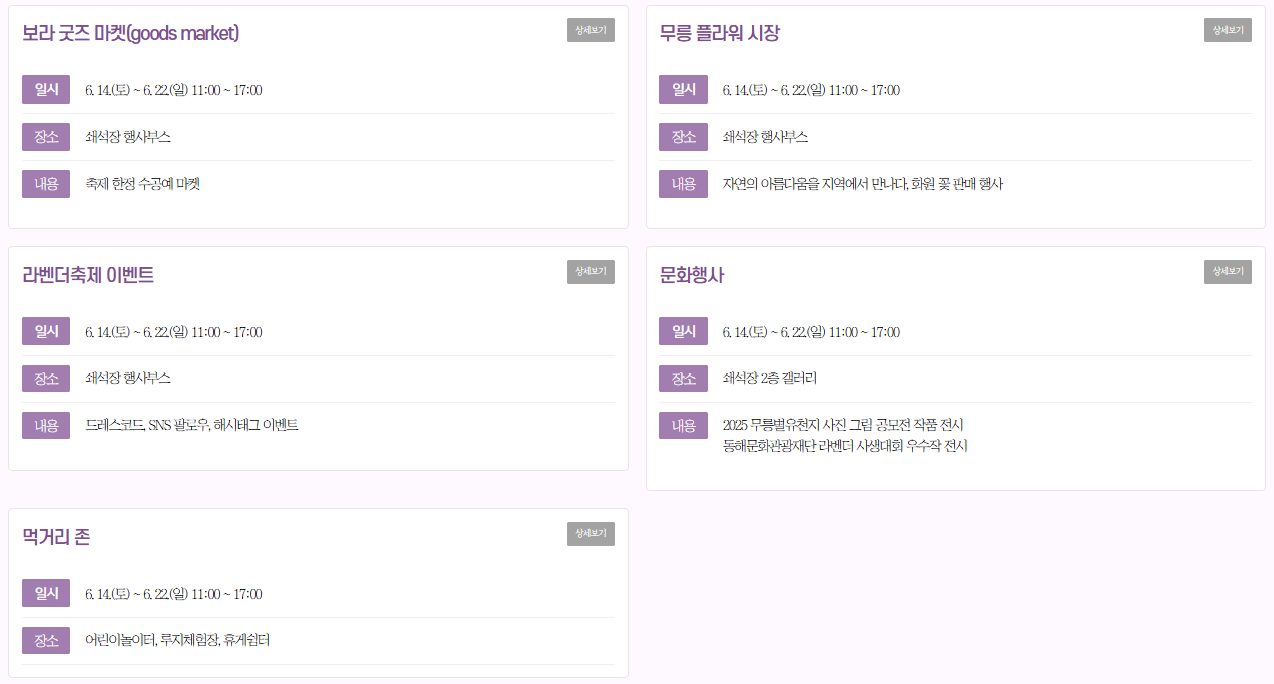 2025년 무릉별유천지 라벤더 축제에 대한 더 많은 정보는 홈페이지를 참조해 주세요.